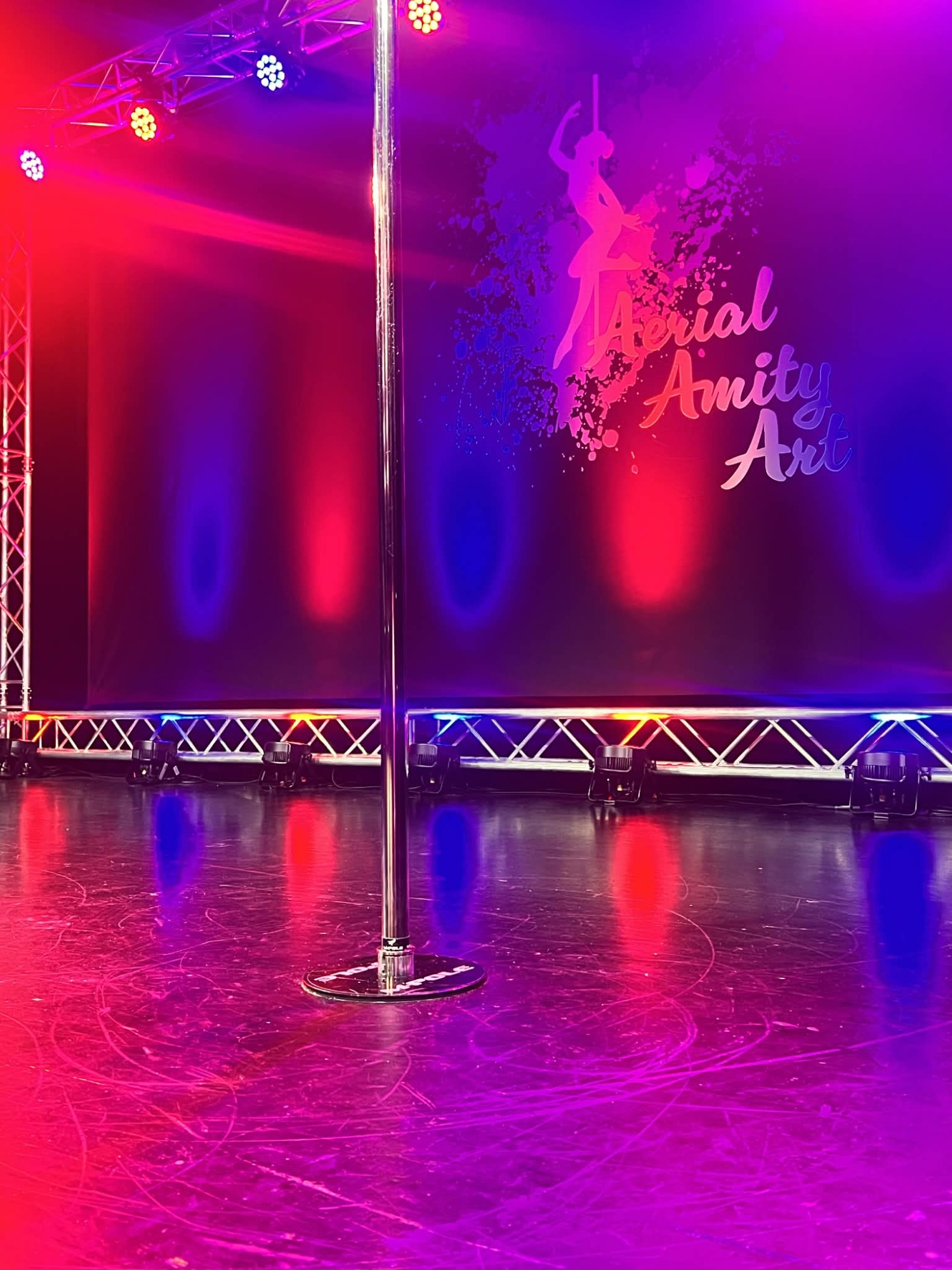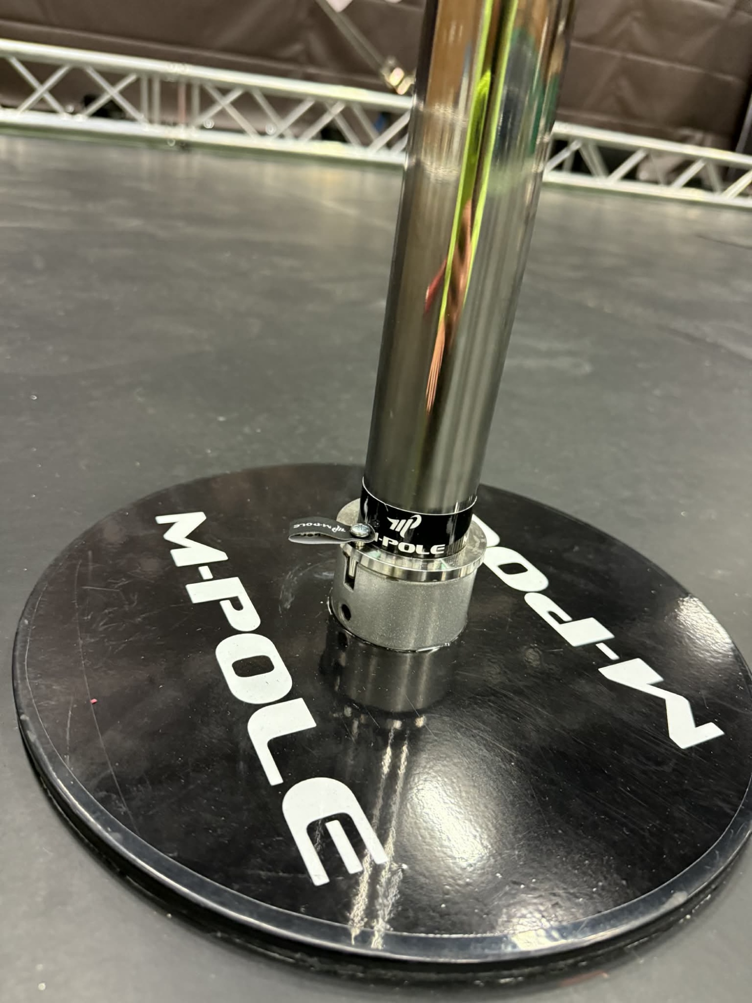 Profesjonalna rurka pole dance do zawodów i eventów, zaprojektowana na bazie konstrukcji wzmacnianej jak w modelach 4-metrowych montowanych na stałe – ale z kluczową zmianą: powiększoną, podklejoną podstawą. Dzięki większej powierzchni styku z podłogą rurka trzyma się stabilnie bez konieczności przykręcania, co jest niezbędne podczas zawodów, gdzie ingerencja w podłogę nie jest możliwa.