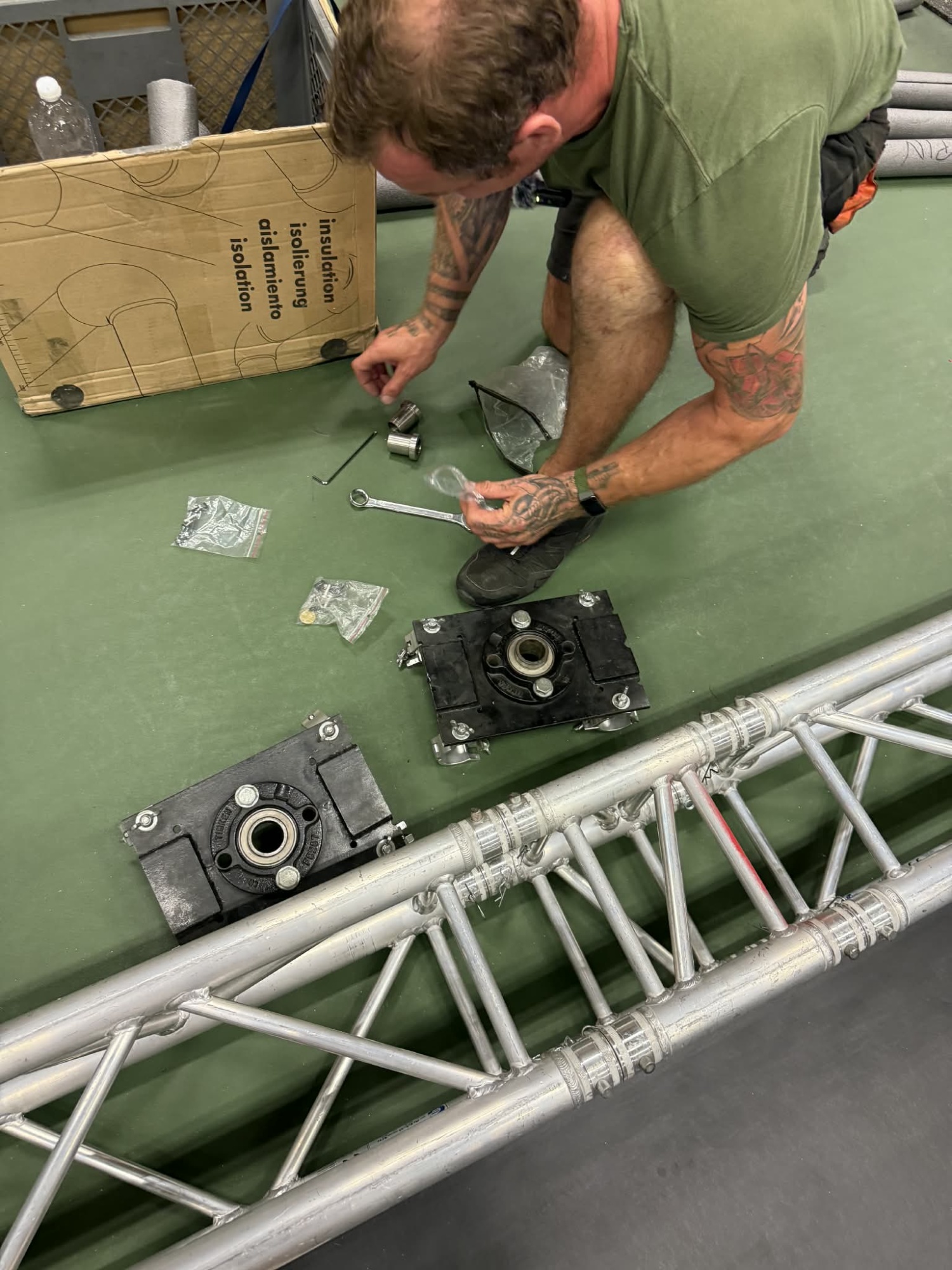 W zestawie znajduje się również górne mocowanie do konstrukcji scenicznej (truss), które pozwala bezpiecznie wykorzystać rurkę na scenie i w warunkach eventowych.